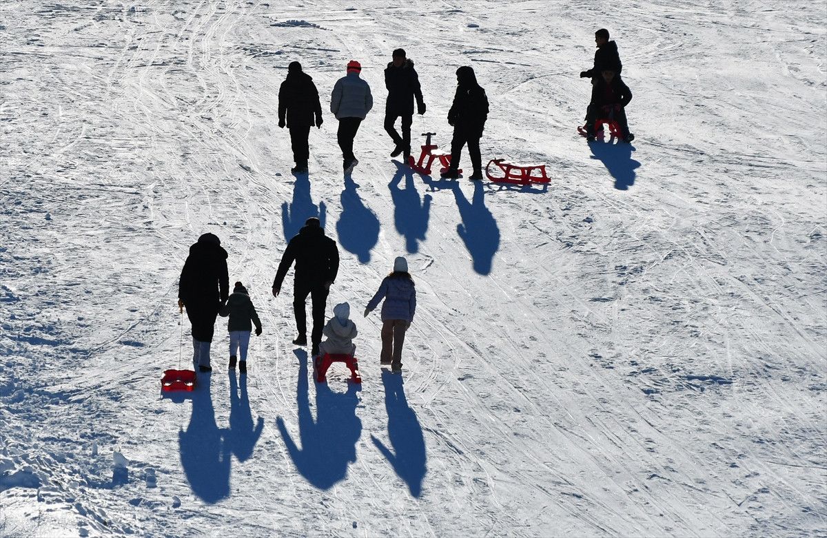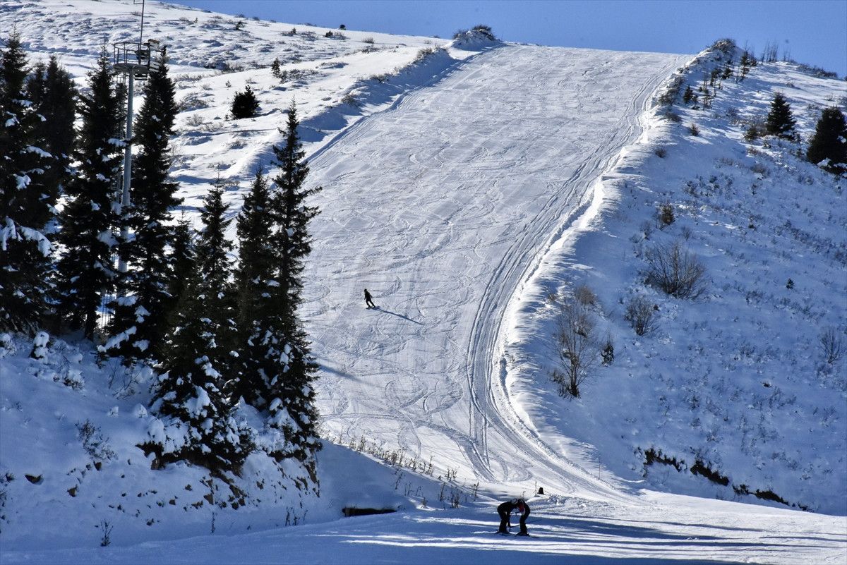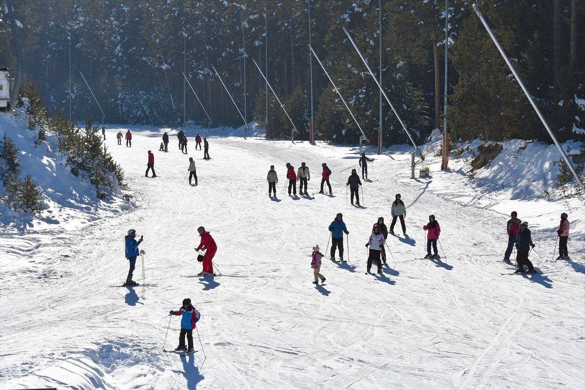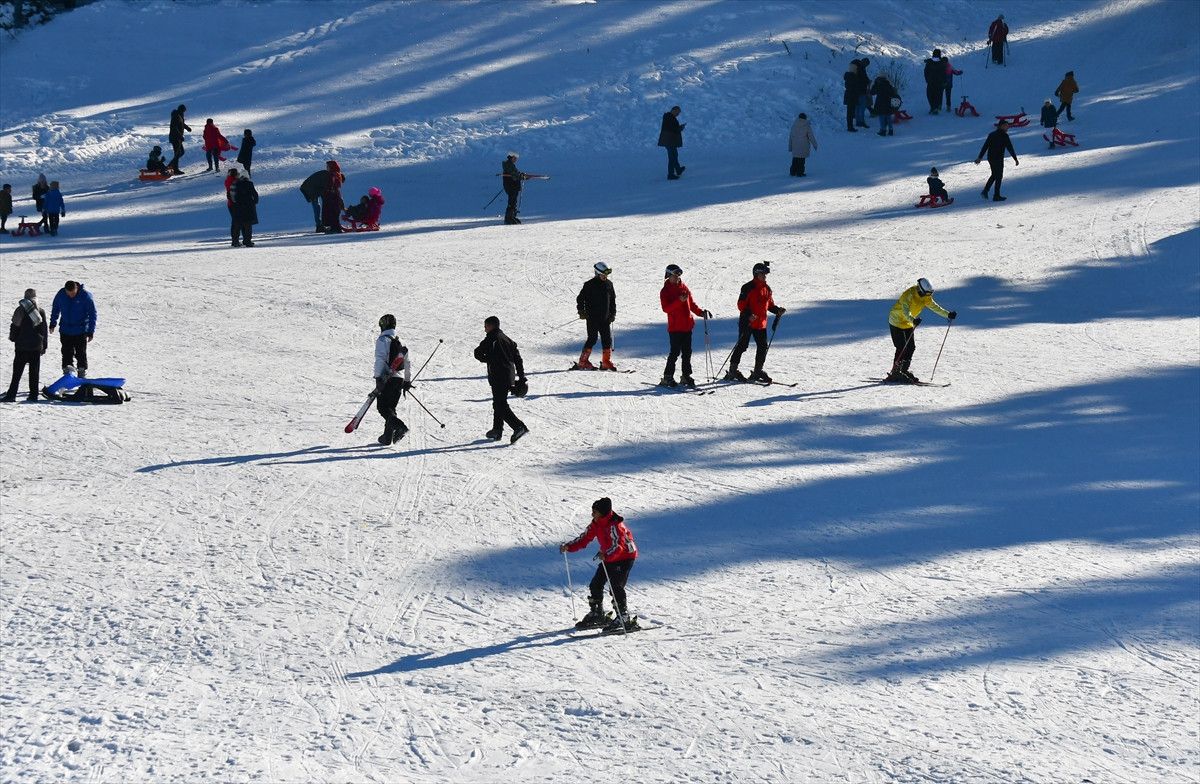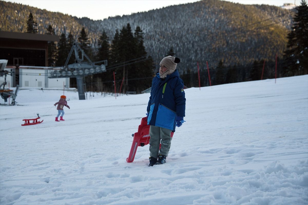 Uygun hava koşulları ve yeterli kar kalınlığı sayesinde kayak merkezlerine gelen ziyaretçiler kayak, snowboard ve kızakla keyifli vakit geçiriyor.