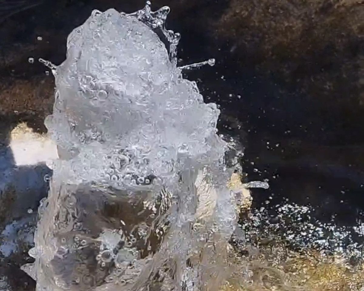 Van’ın Gevaş ilçesine bağlı İnköy Mahallesi sahilinde, göl sularının çekilmesiyle ortaya çıkan mikrobiyalitlerden birinden tatlı su fışkırdığı gözlendi.